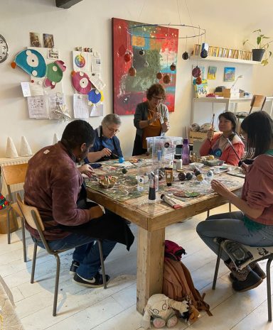 Atelier / winkel 'aan het grachtje' is gelegen aan de stadsgracht in het centrum van Zwolle. In het atelier kunnen deelnemers samen met ons team van professionele en creatieve begeleiders veel verschillende creatieve activiteiten ondernemen. Daarnaast helpen deelnemers mee in onze cadeauwinkel. Lees hier verder.
